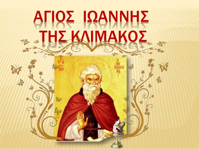 Είναι ένας μεγάλος ασκητής του 7ου μ.Χ. αιώνα, που με την ζωή του έδειξε πως η πορεία μας στον κόσμο αυτό, είναι σαν σκαλοπάτια προς τον ουρανό. Καρπός της ζωής του ήταν ένα βιβλίο που έγραψε και ονομάζεται η «Κλίμακα», που σημαίνει σκάλα. Με τους λόγους του μας εξηγεί πως μπορεί να ανεβεί κανείς τα σκαλοπάτια από τη γη μέχρι τον ουρανό, ώστε να συναντηθεί με τον Χριστό.